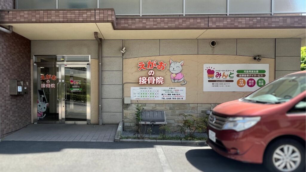 すぐ10mほどで右側にえがおの接骨院が見えます。