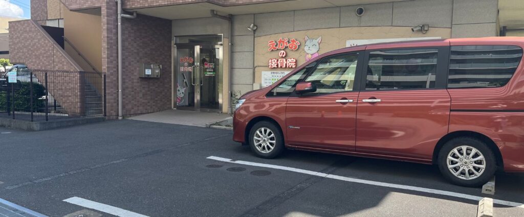 店舗側の駐車スペース2台のうち、道路側の1台がえがおの接骨院の駐車スペースです。